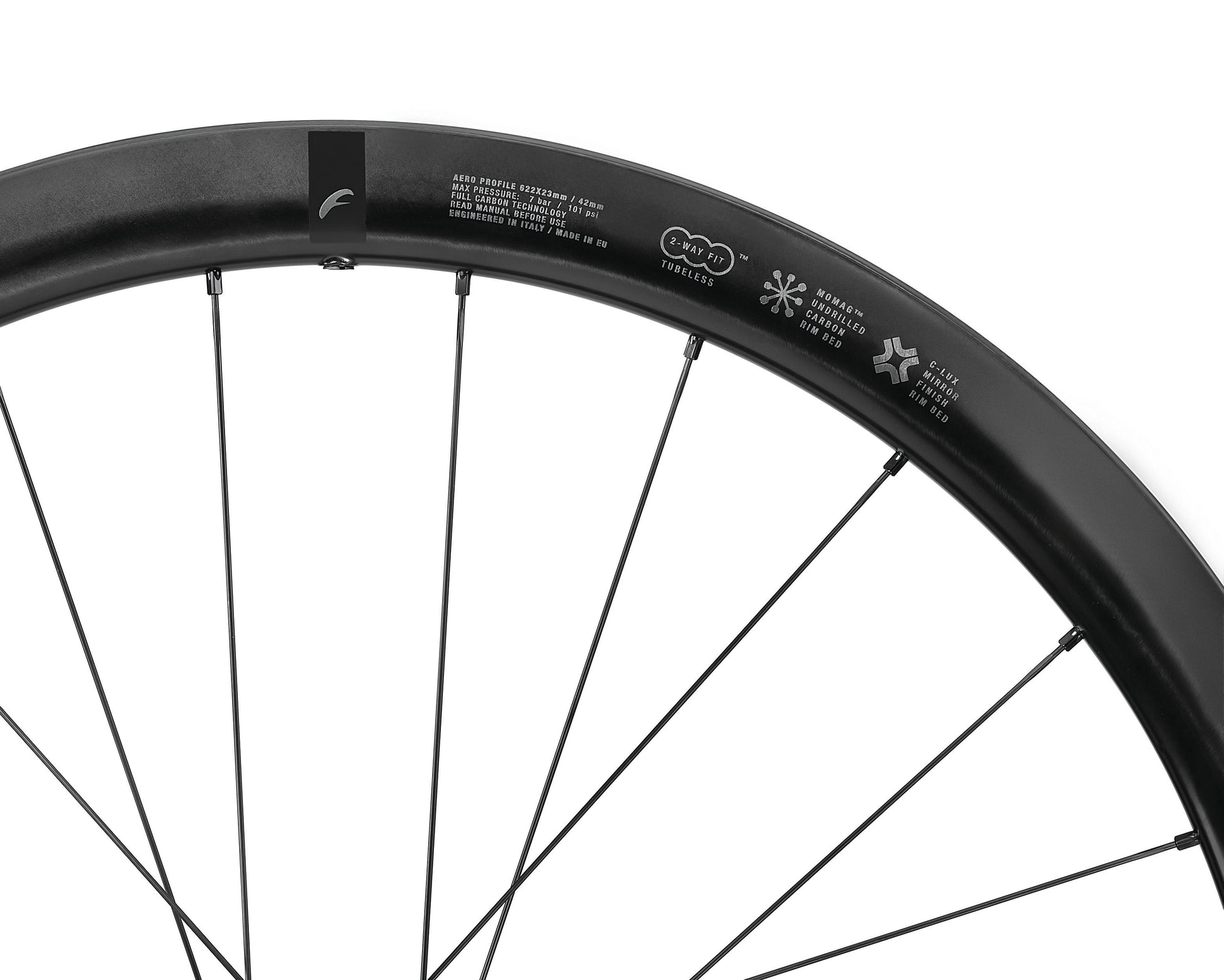 For at øge styrken yderligere i fælgen har den ingen udvendige eger huller. Dette betyder samtidig at hjulsættet kan køres uden brug af fælgtape, også ved tubeless opsætning.